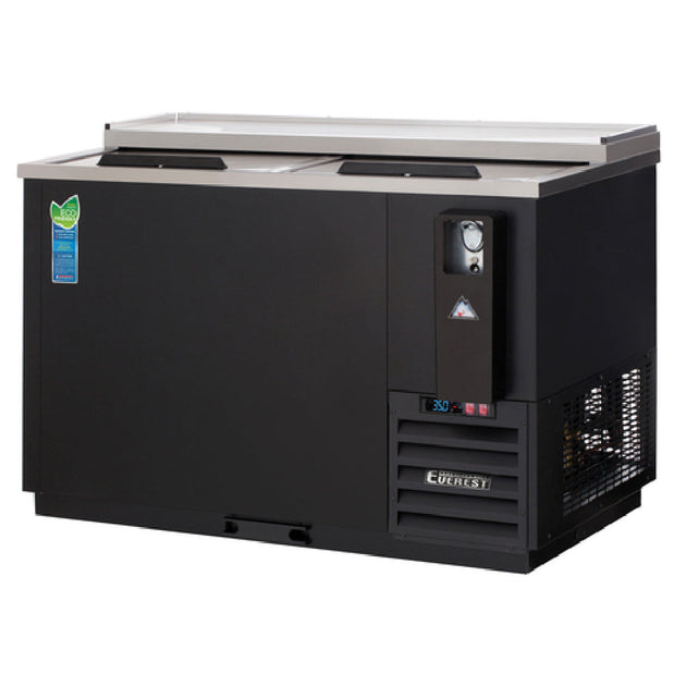 Everest Refrigeration EBC50 49-1/2 Inch Horizontal Bottle Cooler electric with stainless steel countertop black laminated exterior