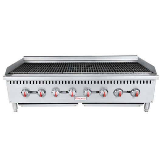 Empura, ECB-48, Heavy Duty Gas Charbroiler, natural gas, 48"W x 29.3"D x 16"H, 8 burners and controllers, countertop installation, 160,000 total BTU, 3/4" rear national pipe thread gas connection, 8 slant cast iron grates, 4" stainless...Sale price $1,249.00Regular price $3,120.00Sale price $1,249.00Regular price $3,120.00