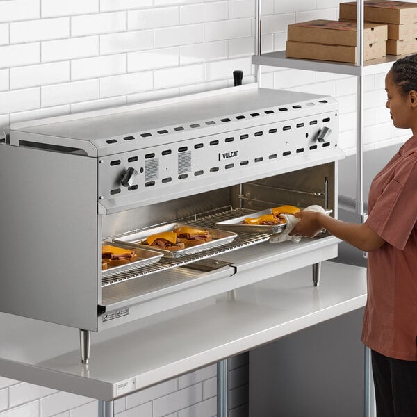 Cheesemelter, gas, 48", (2) infrared burners, 3-position heavy duty rack, removable pan, stainless steel interior, includes: wall mount panel, 40,000 BTU, NSF, CSA Star, CSA Flame